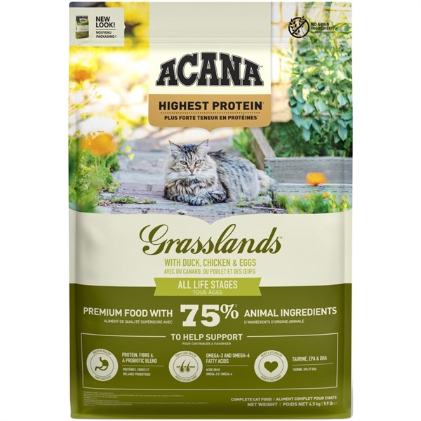 Vi har fundet Acana Cat Highest Protein Grasslands Kg fra Acana hos MyPets.dk i kategorien Kattemad Kattemad Mærker Acana Kattemad. Sammensætning
