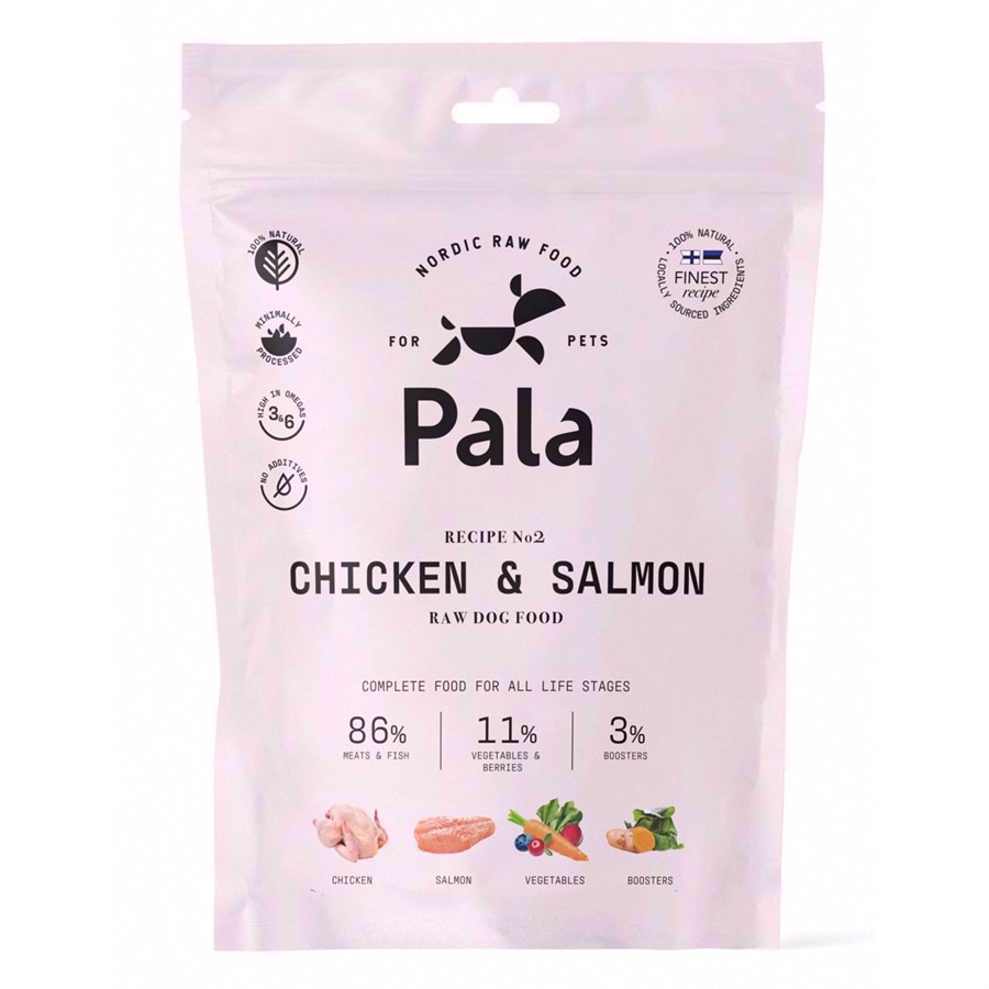 Vi har fundet Pala Raw Dog Food Chicken Salmon G fra Pala hos Hunde-foder.dk i kategorien Pala Hundefoder. En super lækker og letfordøjelig kombination af hel kylling og laks med friske grøntsager, bær, tang, gurkemeje, sort hvidløg, urter.