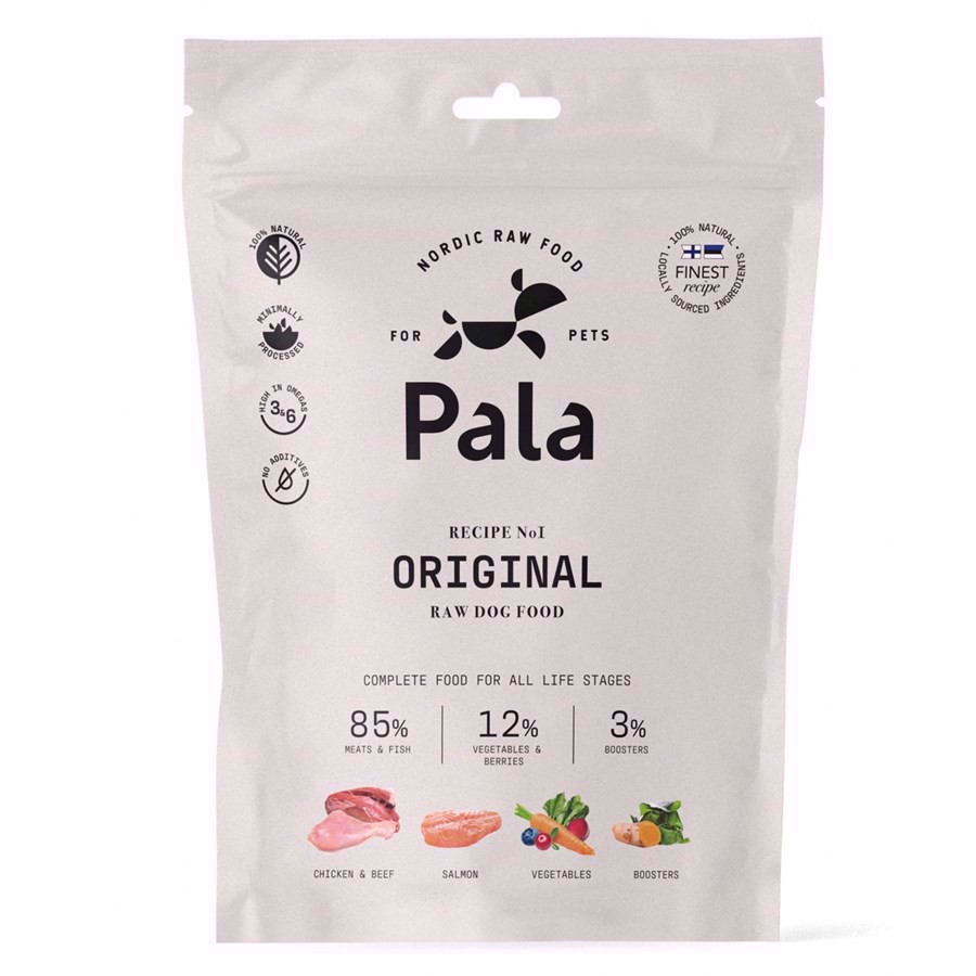 Vi har fundet Pala Raw Dog Food Original G fra Pala hos Hunde-foder.dk i kategorien Pala Hundefoder. Den perfekte blanding af letfordøjelig proteiner kylling, oksekød, laks og frisk grøn kallun, friske grøntsager, tang, urter og helt naturlige kosttilskud.