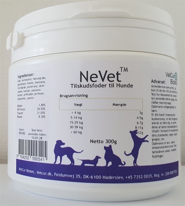 Vi har fundet Vetcur Nevet Pulver Tilskud Til Hund G fra Vetcur Biotec hos Hunde-foder.dk i kategorien Tilskud. NeVet tilskud til hunde er et naturligt tilskud til en mentalt velfungerende hund