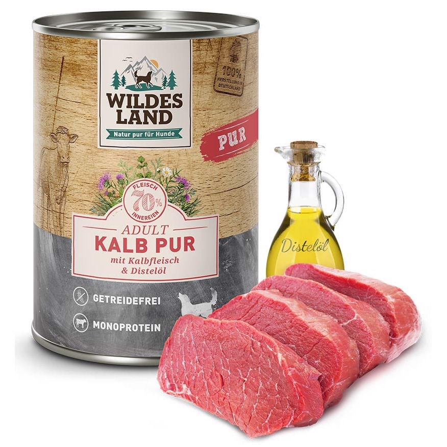 Vi har fundet Wildes Land Pur Kalv Dåsemad G fra Wildes Land hos Hunde-foder.dk i kategorien Wildes Land Hundefoder. kornfrit og højtoptageligt single protein dåsemad med kalvekød