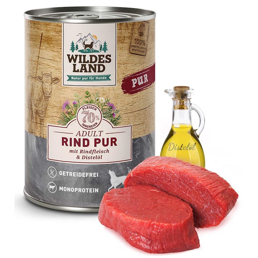 Vi har fundet Wildes Land Pur Oksekød Dåsemad G fra Wildes Land hos Hunde-foder.dk i kategorien Wildes Land Hundefoder. Wildes Land Oksekød – Kornfrit dåsemad med indhold af 70% mager kød og indmad