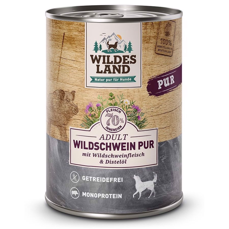 Vi har fundet Wildes Land Pur Vildsvin Dåsemad G fra Wildes Land hos Hunde-foder.dk i kategorien Wildes Land Hundefoder. Kornfrit, fedtfattigt og singleprotein dåsemad med vildsvin