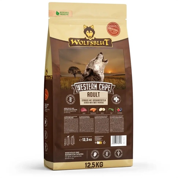 Vi har fundet Wolfsblut Western Cape Kg fra Wolfsblut hos Hunde-foder.dk i kategorien Wolfsblut Hundefoder. Et kornfrit foder med indhold af strudsekød og velegnet til voksne hunde i alle størrelser