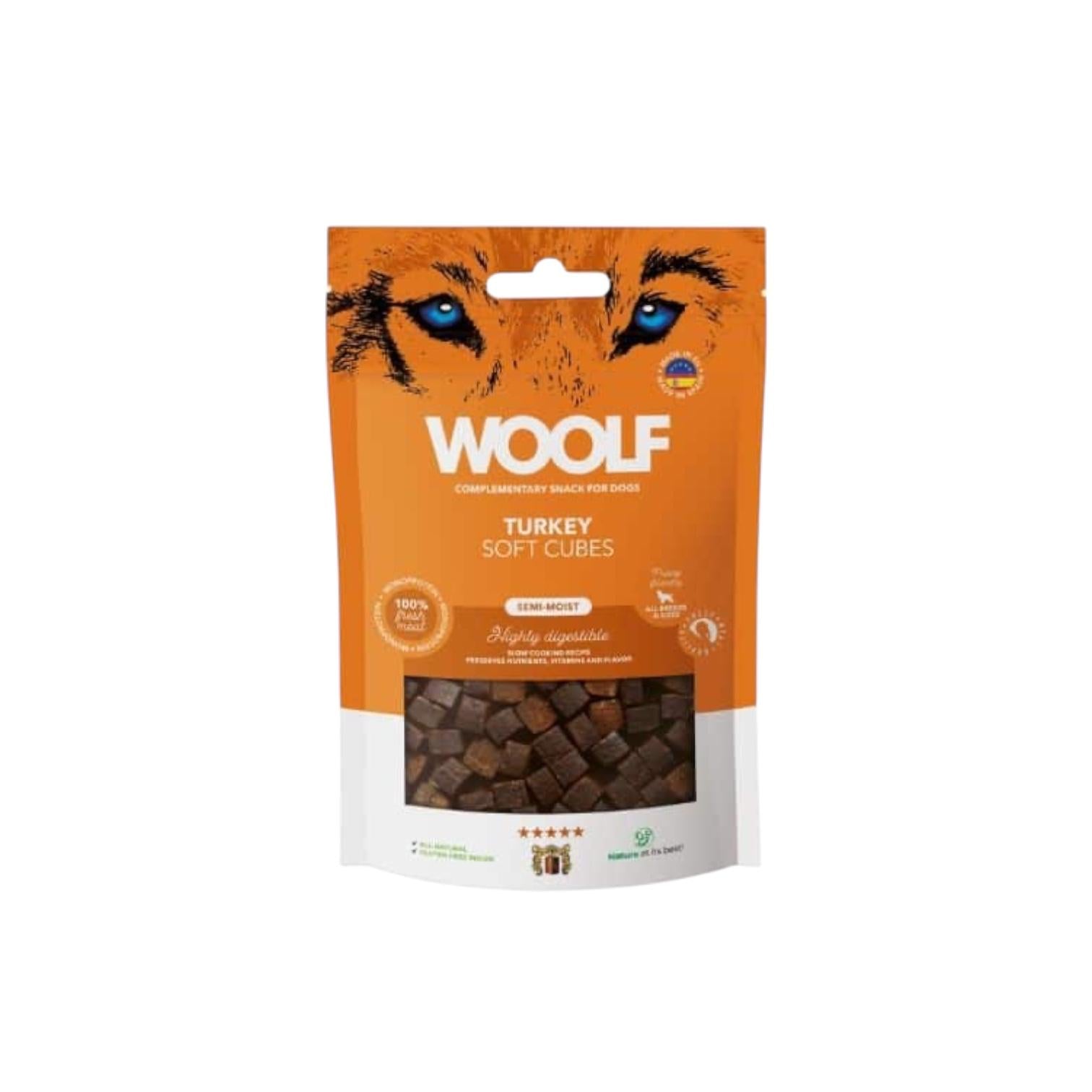 Vi har fundet Woolf Bløde Kalkun Godbidder fra Woolf hos doodledog i kategorien Snacks. Woolf Soft Cubes er en blød og smagfuld godbid velegnet til træning, belønning, til store til små og til hvalpe. KornfrieGlutenfrieFriske lokale råvarerSlow-cooked (behandlet ved lave temperaturer)KoldpressetProduceret i Spanien Mange spændende varianterW