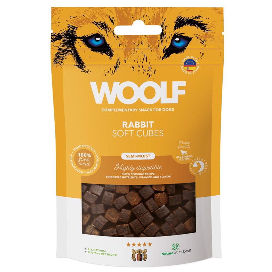 Vi har fundet Woolf Soft Cubes Rabbit G fra Woolf hos Hunde-foder.dk i kategorien Godbidder. FAST TILBUD – TAG 3 POSER FOR KR. 100,-