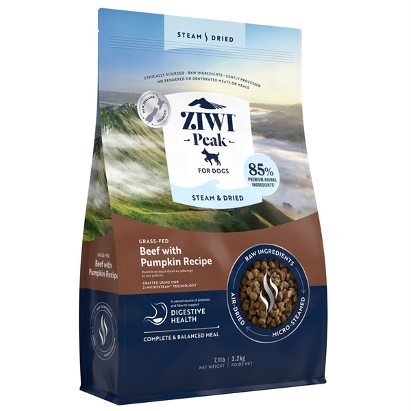 Vi har fundet Ziwipeak Dog Steam Dried Beef Kg fra Ziwipeak hos Hunde-foder.dk i kategorien Ziwi Peak Hundefoder. NYHED FRA ZIWIPEAK! – 85 % premium microdampet og lufttørret råt kød og organer. Indeholder oksekød, indmad, samt knogler og brusk